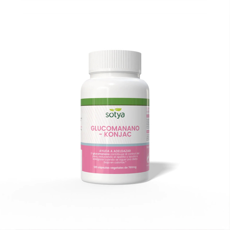 El Glucomanano de Sotya es una fibra vegetal soluble obtenida del konjac, reconocida por su capacidad para ayudar en la pérdida de peso cuando se sigue una dieta baja en calorías. Contribuye al control del peso, ayudando a reducir el apetito y favoreciendo la sensación de saciedad. Este efecto beneficioso se obtiene con una ingesta diaria de 3 g de glucomanano, en tres dosis de 1 g, junto con uno o dos vasos de agua antes de las comidas.